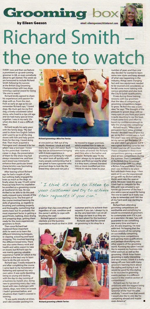 Richard recently appeared in the Grooming Box article of Dog World – weekly canine newspaper.