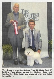 Richards choice for best of breed and best puppy in breed at the North Wales Toy Dog Society show where he had the honour to be invited to judge the Bichon Frise classes.